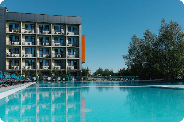 - Теплая вода +28°C – плавание под открытым небом в окружении природы!